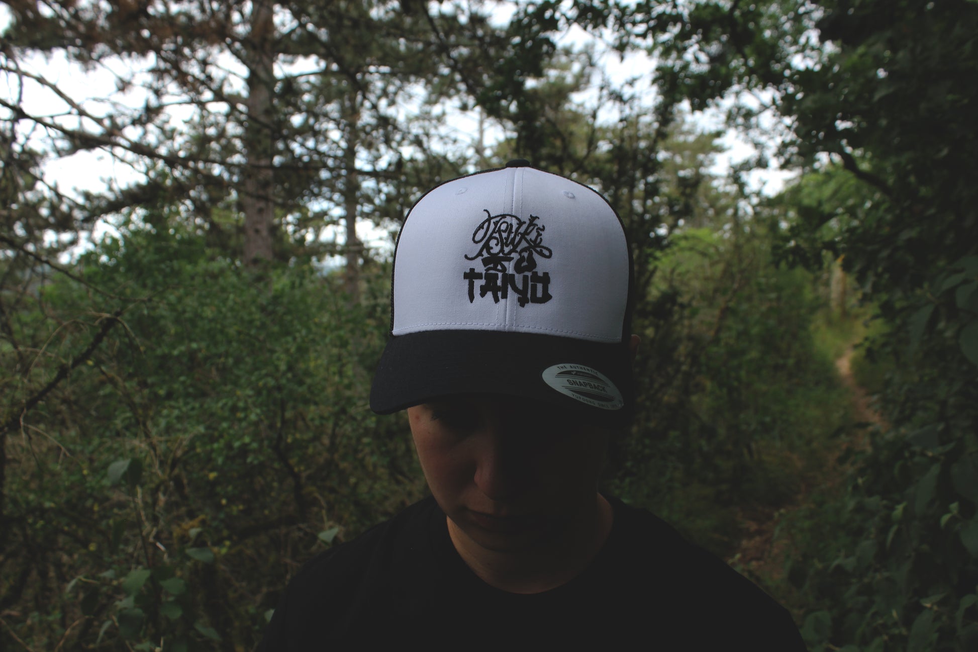 Casquette Trucker avec une partie avant blanche, une visière et une partie arrière en maillage.